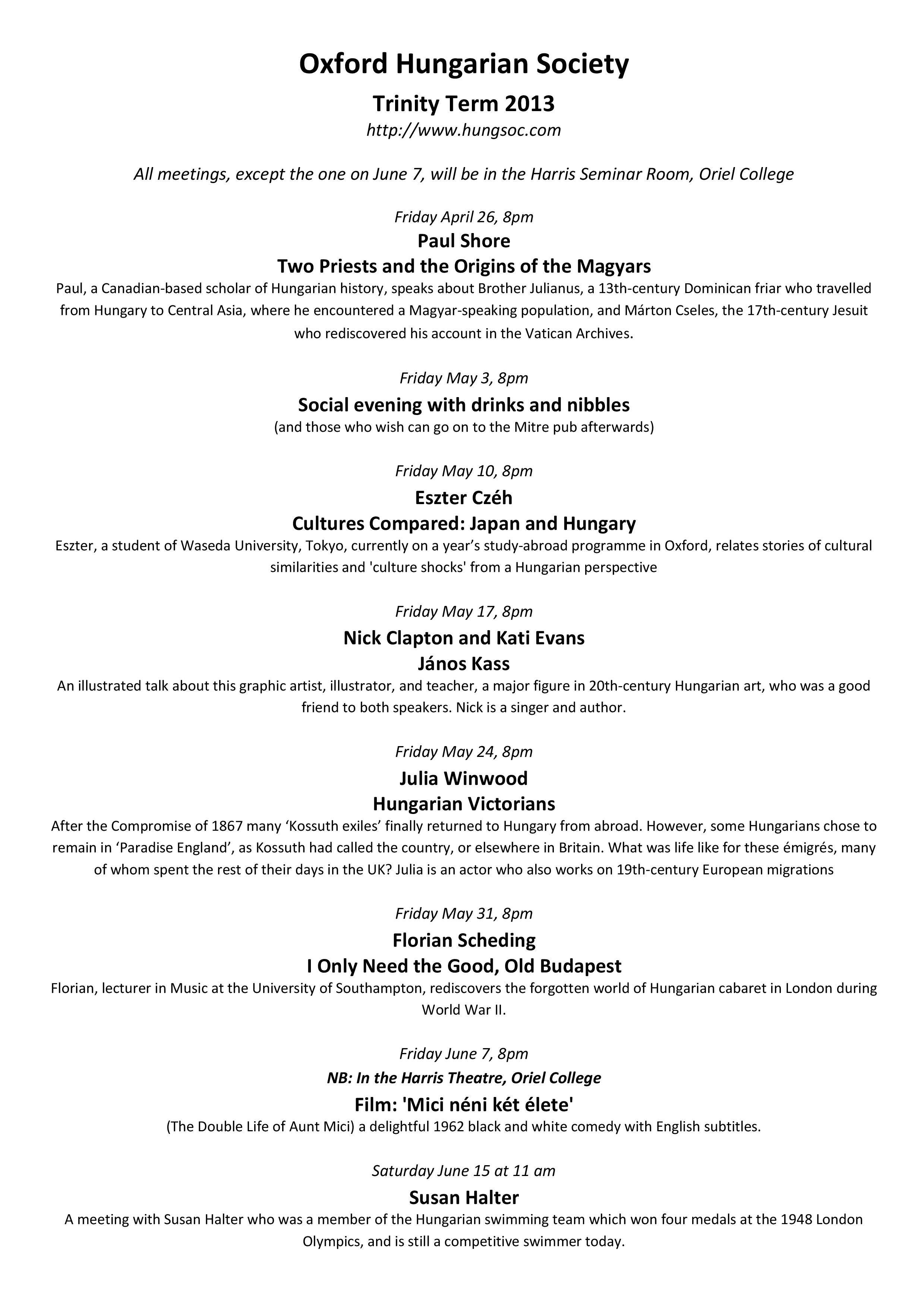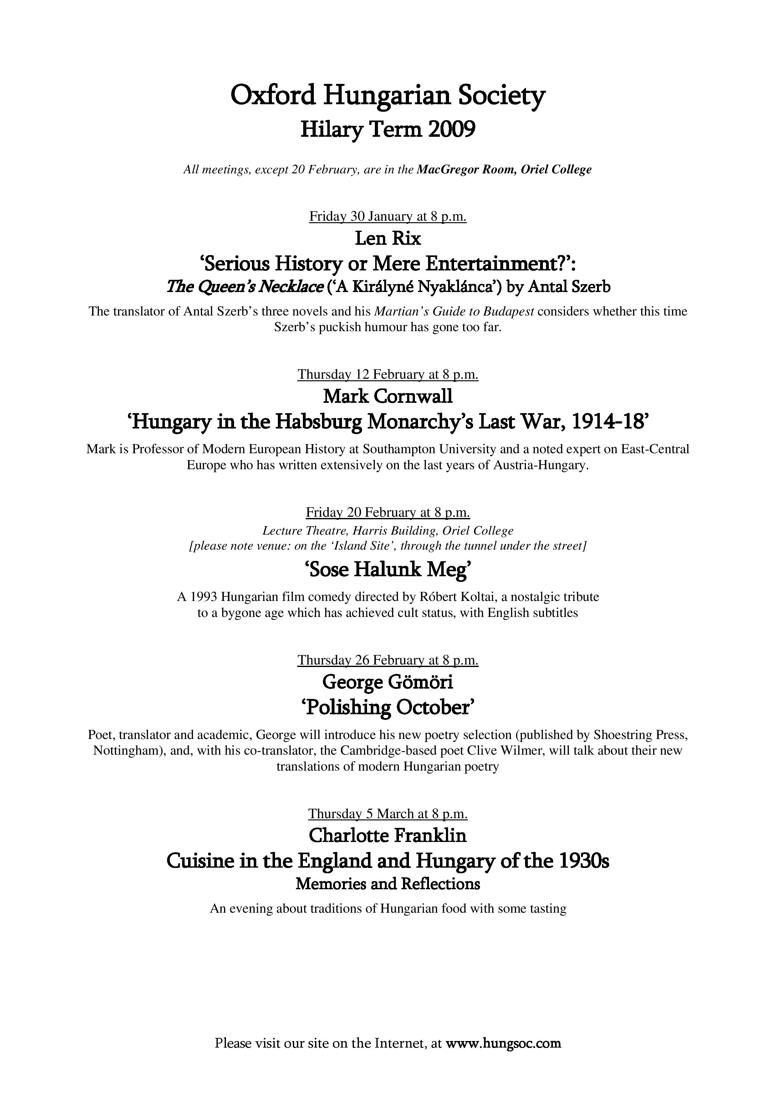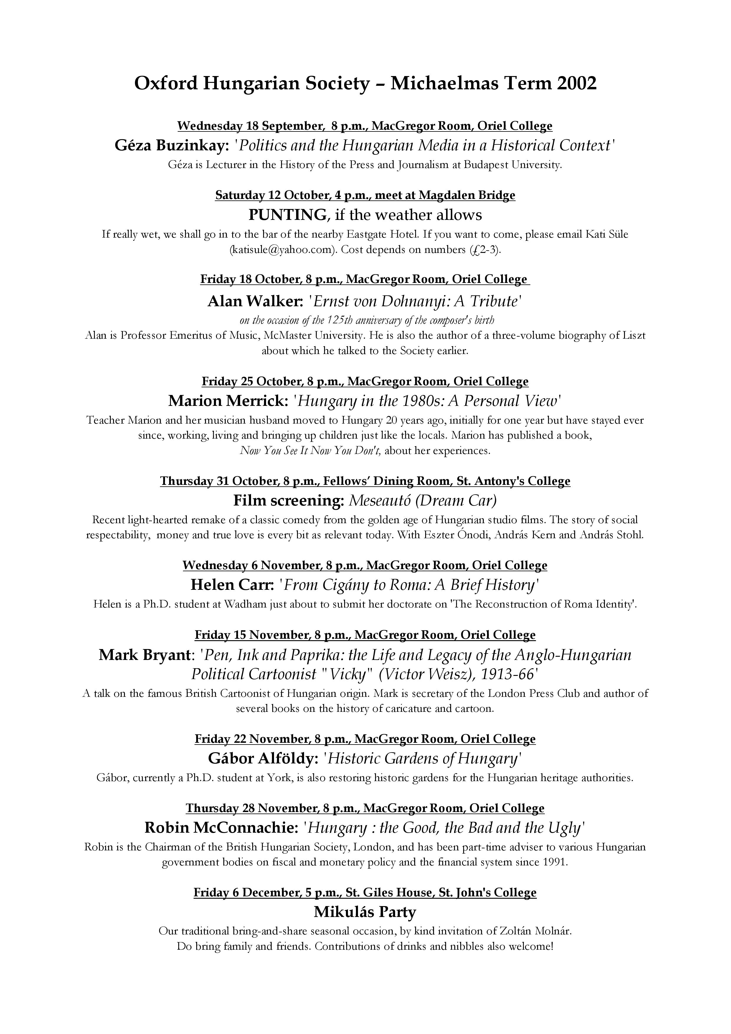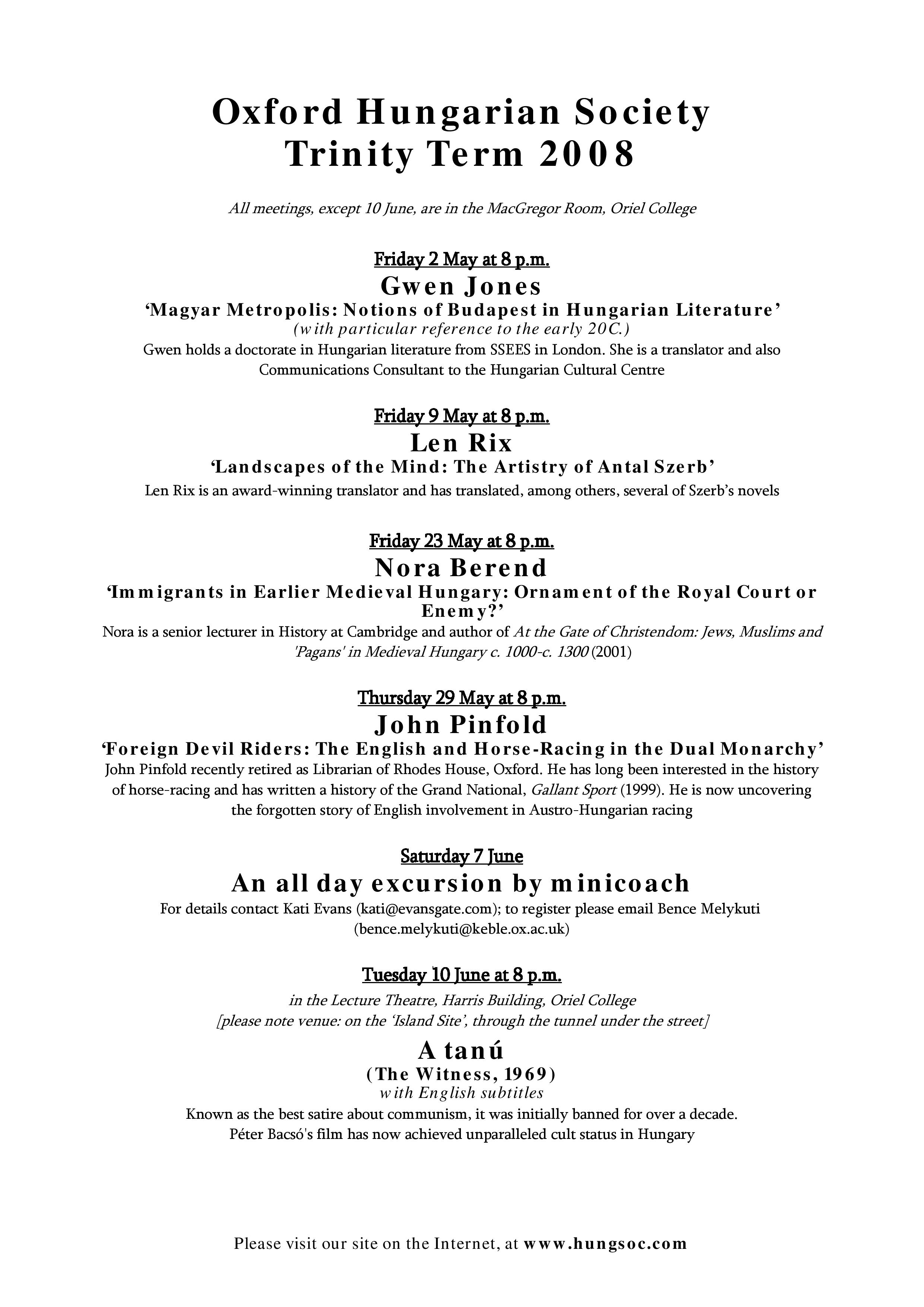 Oxford Hungarian SocietySort code: 20-01-09Account number: 13317595