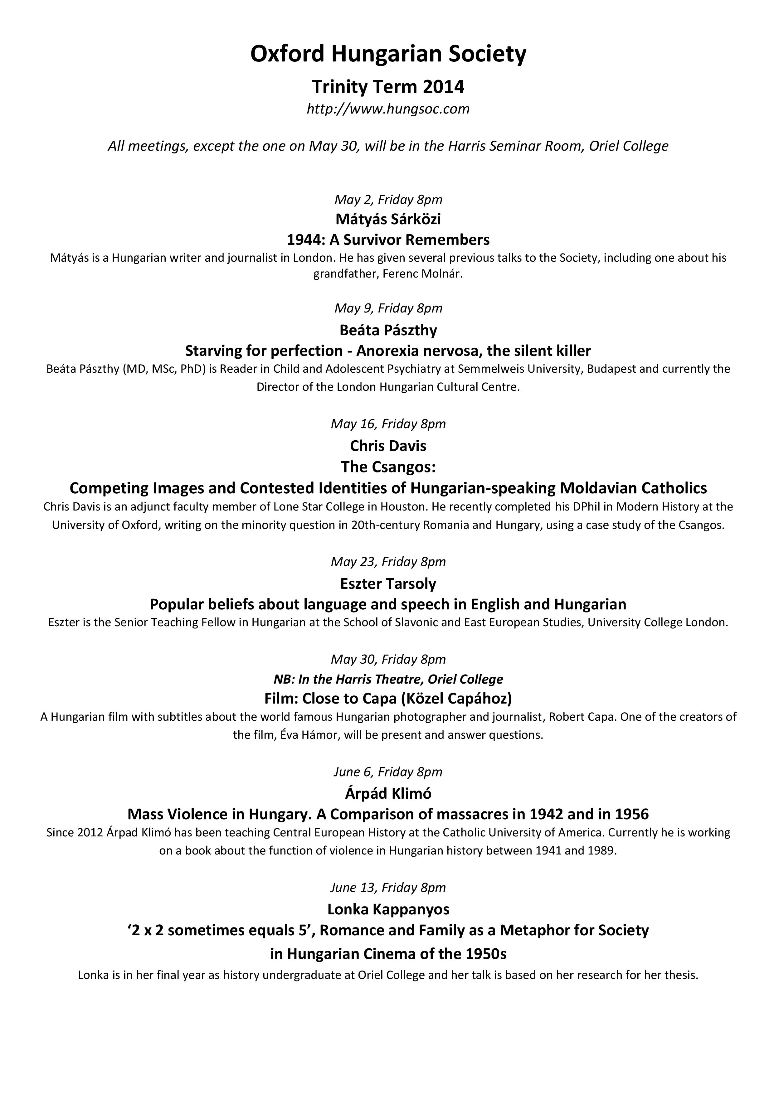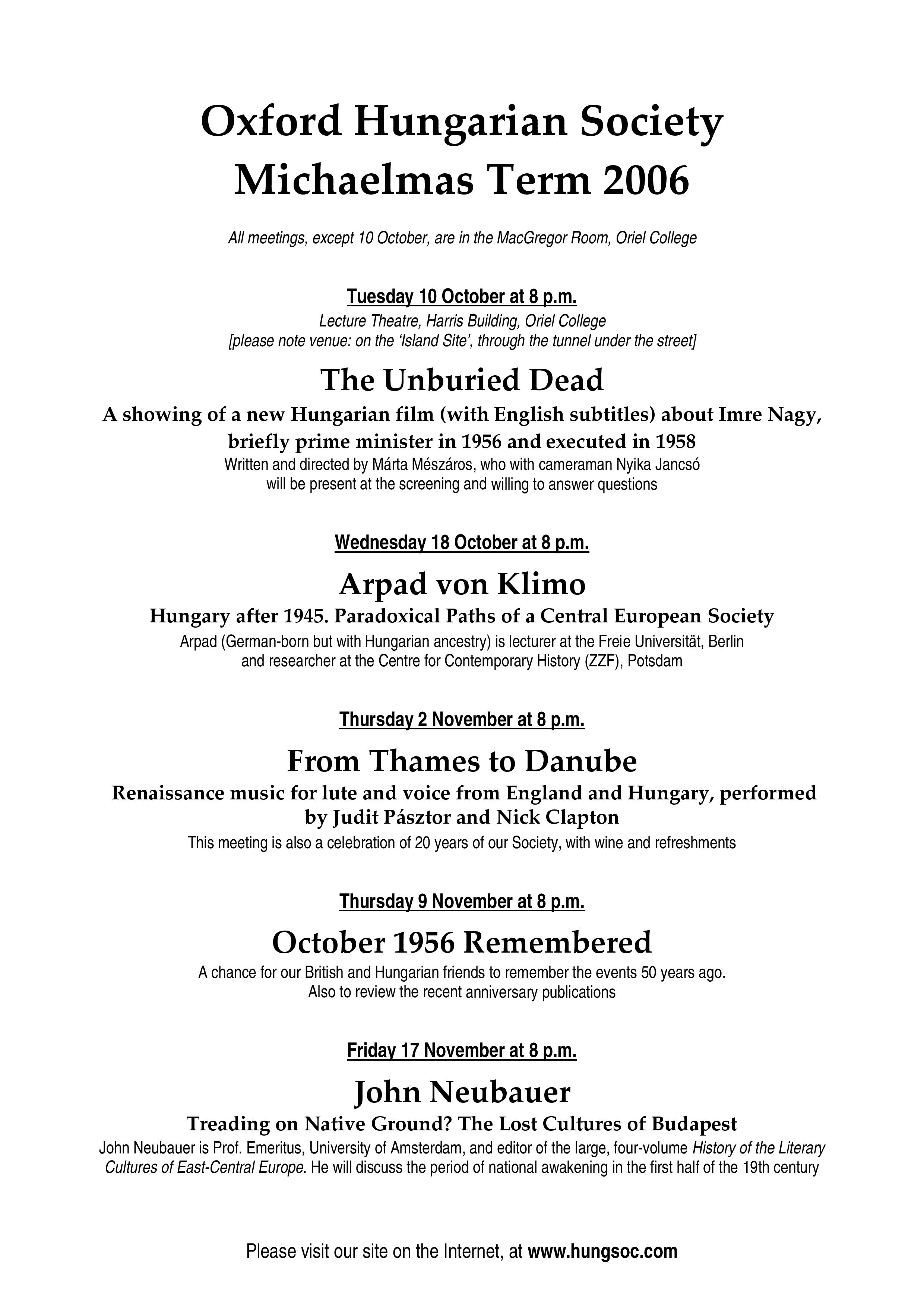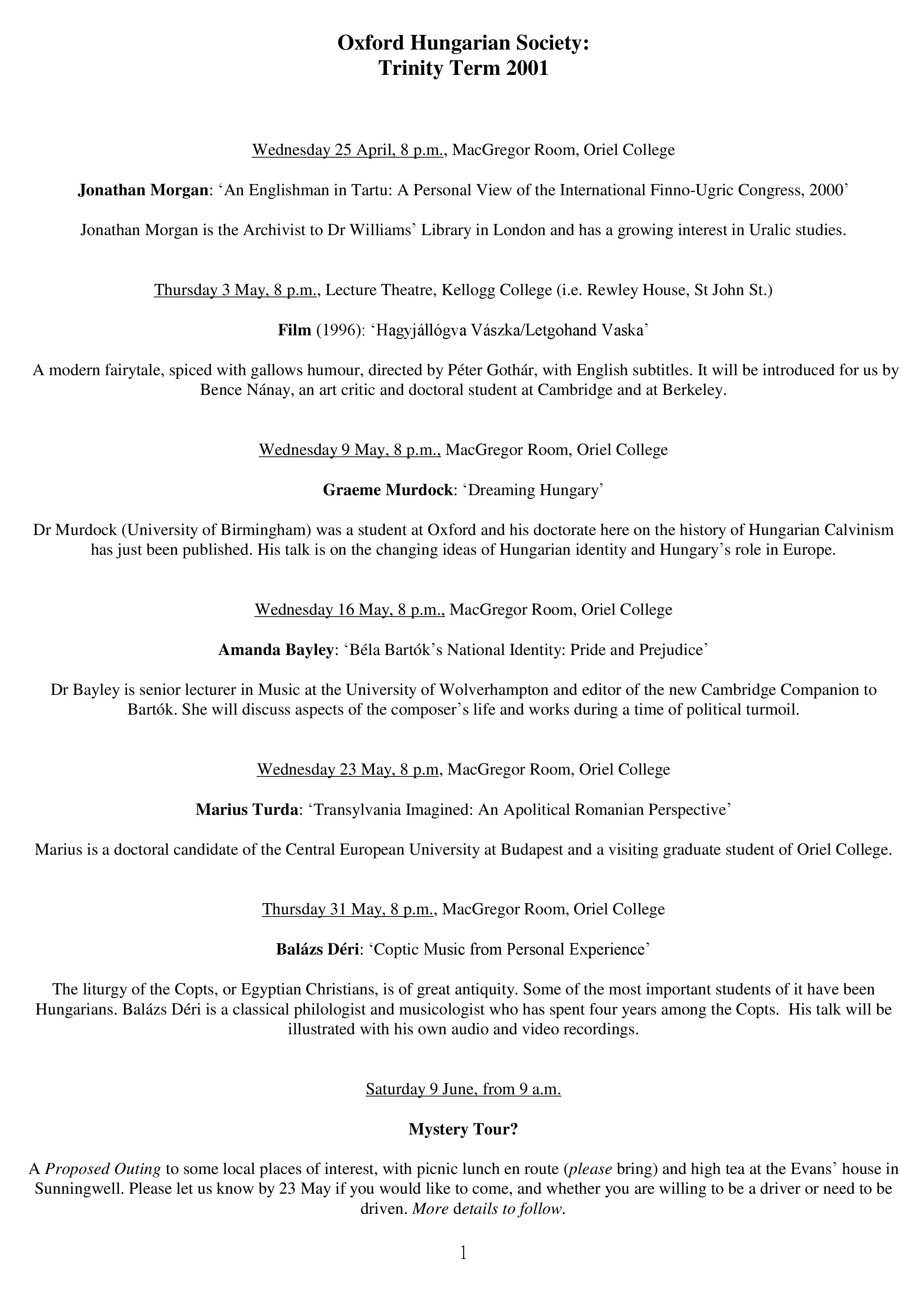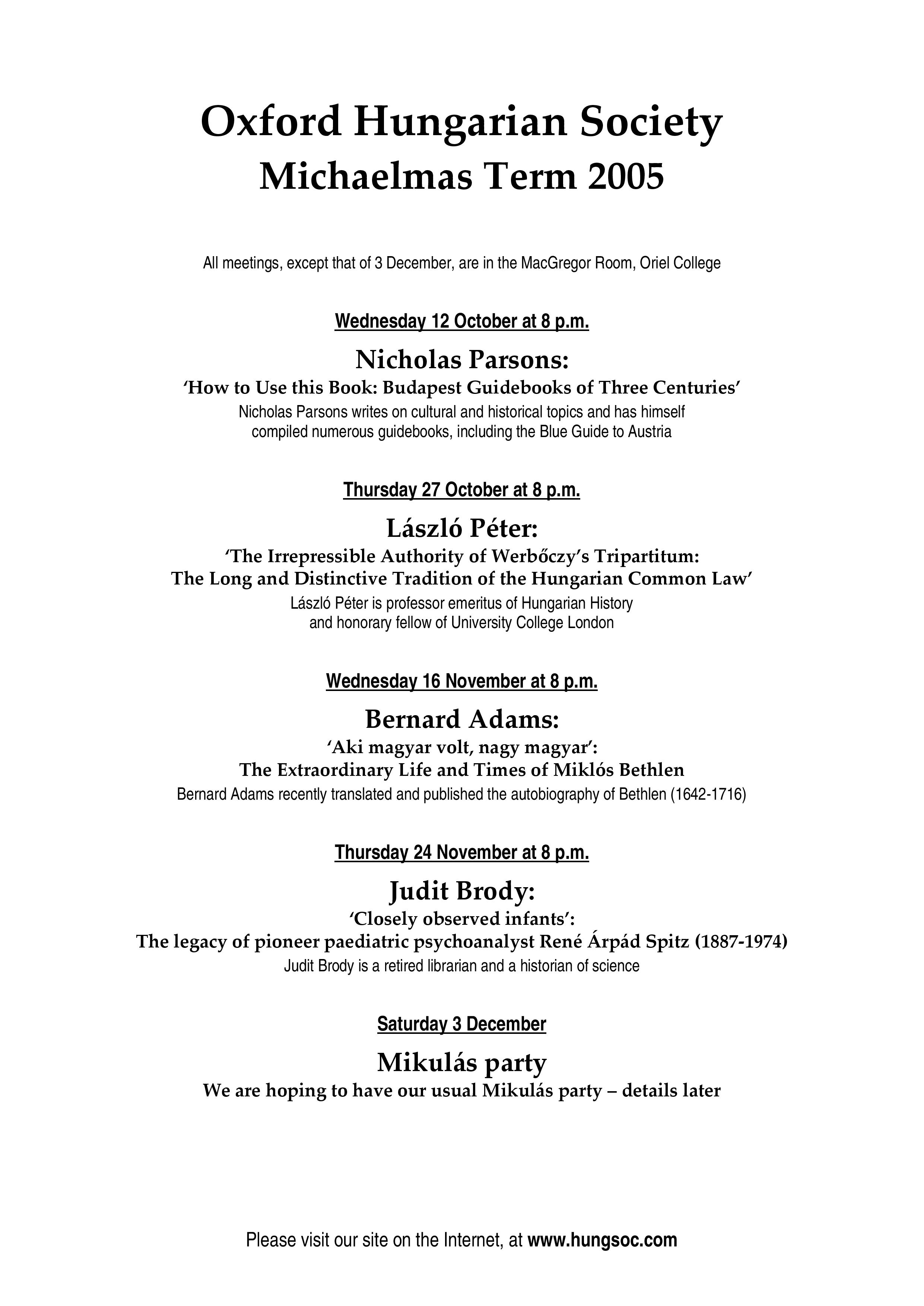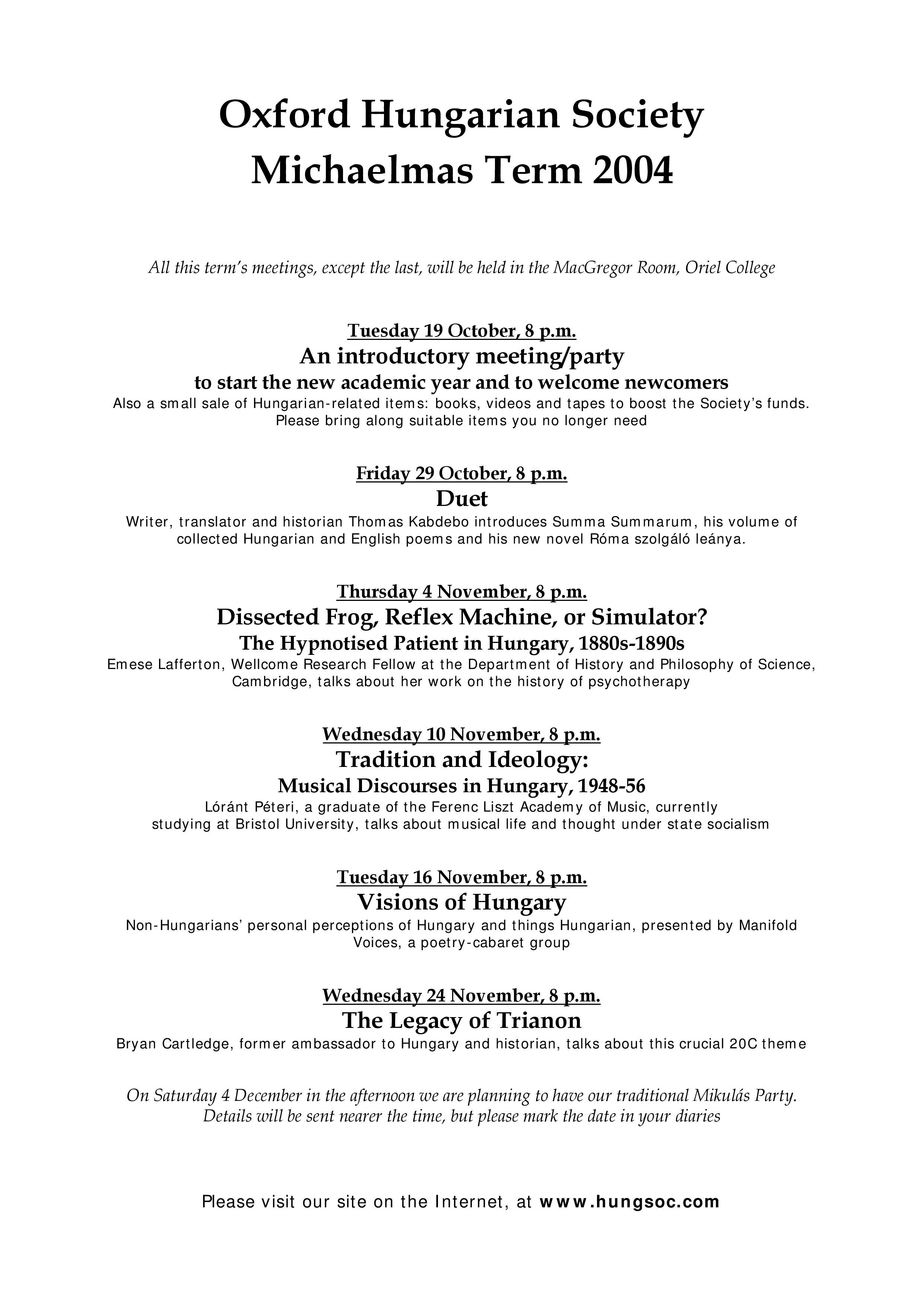 Oxford Hungarian SocietySort code: 20-01-09Account number: 13317595